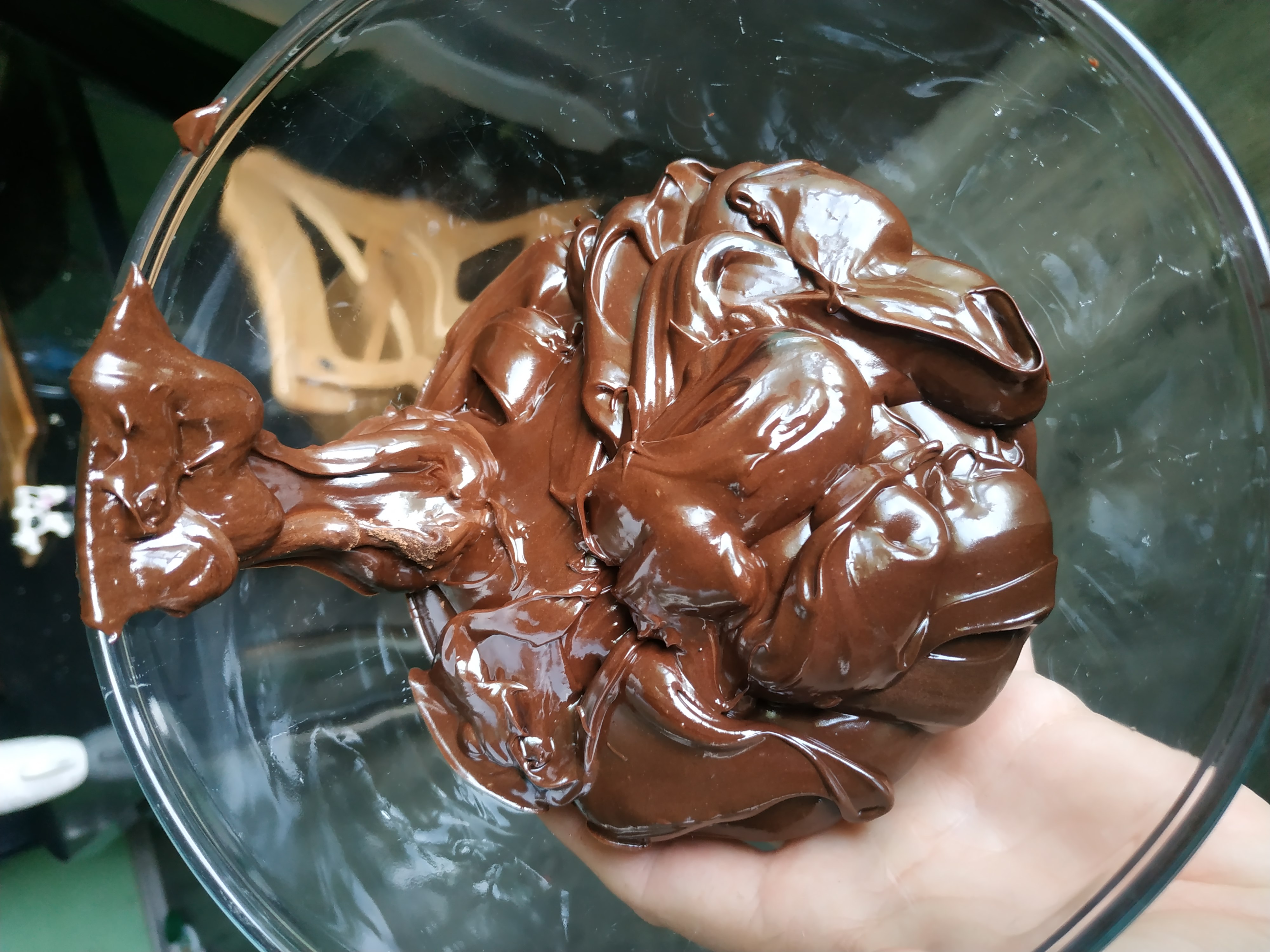Po ostudzeniu ustawić 4,30sek/ obroty 3-4 i przez otwór w pokrywie stopniowo dodawać masło oraz kakao. Pod koniec ubijania wlać kieliszek spirytusu.