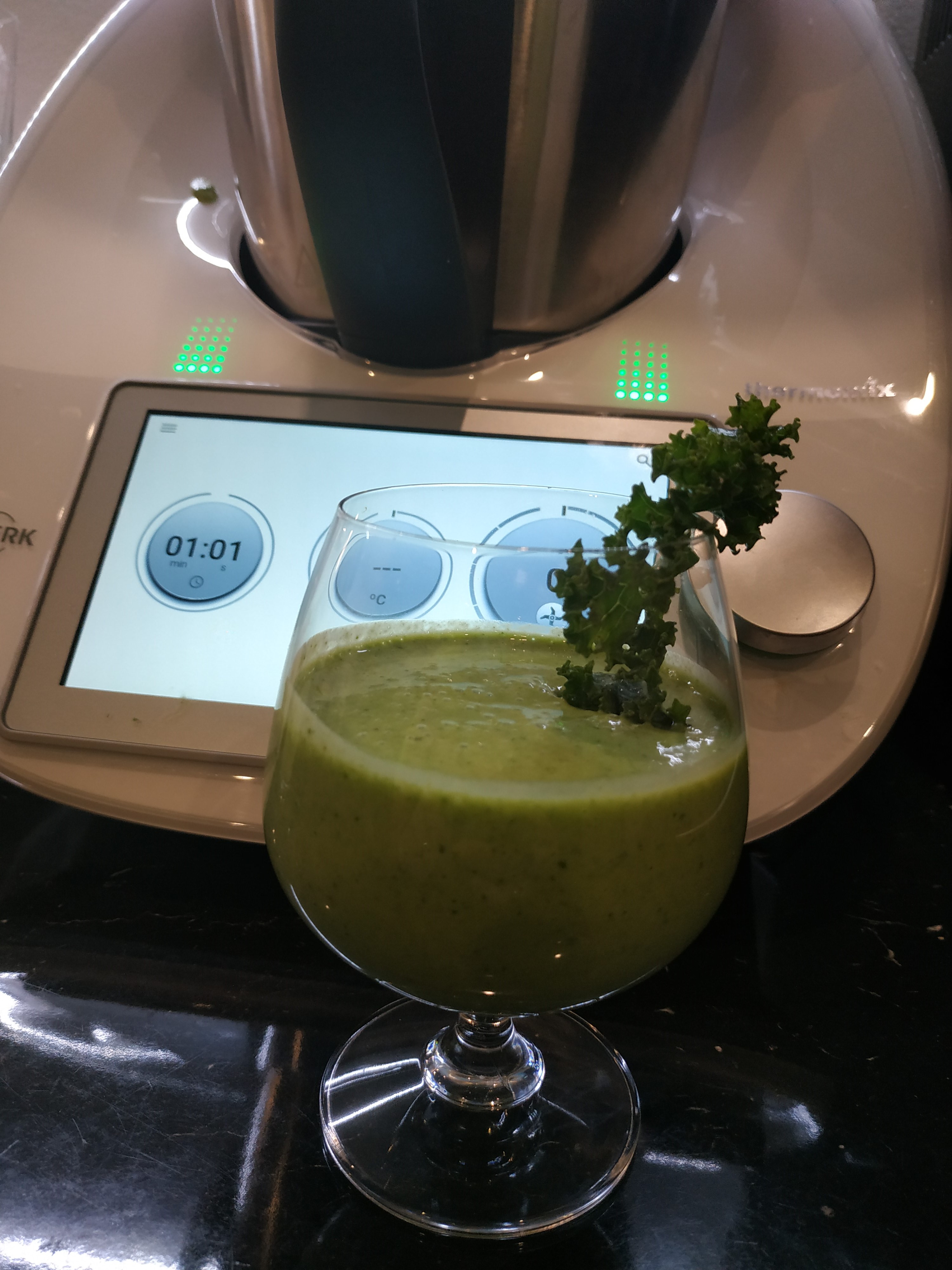Do naczynia miksującego włożyć jarmuż, banana i pomarańczę, zmiksować 20s/obr10